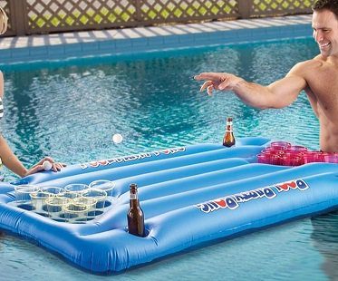If you're planning a pool party then make it an epic one with this inflatable beer pong! It takes the classic game to a whole new level- a wet and wild one! Easy to inflate and will hold all of your beer cups and wash cups. Perfect for home pools, beaches and lakes.