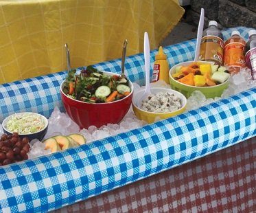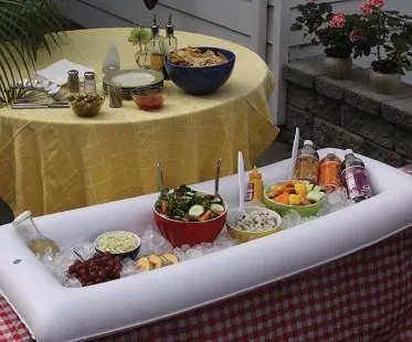 Keep your party food fresh and chilled for hours with this inflatable buffet bar! It's perfect for picnics, tailgating, parties and more! Once inflated, simply fill it with ice and they add your fruits, salads or whatever else you want to keep cool.