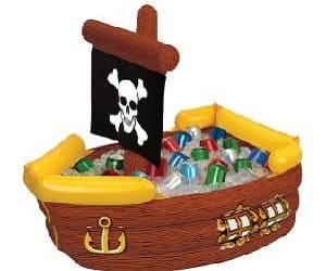 Keep the drinks flowing at your party with this inflatable pirate ship cooler! It's great to use indoor or outdoor and will save constant trips to the fridge! Once inflated just add ice cubes and your favorite drinks.
