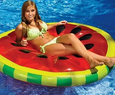 Chillax in your home pool floating on this juicy looking inflatable watermelon! Enjoying a slice has never been more fun! It's quick and easy to inflate so you can get to soaking up the sun in no time. Made from heavy duty vinyl.