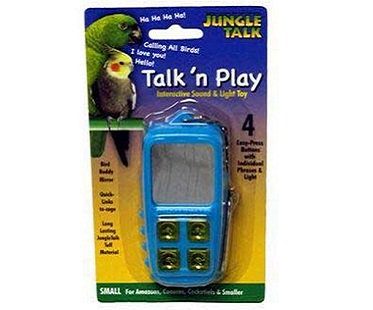 Keep your little social tweeter entertained with this interactive bird toy! It's like a personal cell phone for your pet parrot than can help to encourage speech- it features 4 buttons they can press with their beak that will play different, pre-recorded messages. There's also a mirror so they can check their appearance!