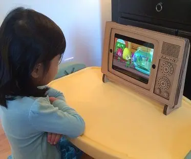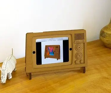 This quirky iPad TV stand is a fun addition to your home and a great way to enjoy watching videos and movies! It's eco-friendly design is made from cardboard and features cut out holes that allow access to all the buttons including the front camera. You could even use it in the kitchen while you're following recipes.