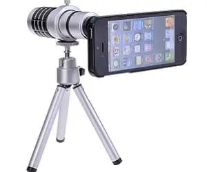 Turn your device into a professional camera with this iPhone camera extension! It includes a 12x zoom lens that attaches to your iPhone so you can take high quality photos, even from a distance. The attached tripod allows you to take group shots that can include yourself!