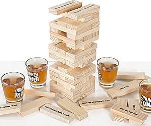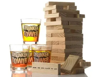 Now you can play Jenga with a fun twist, and this one's for adults only! This Jenga drinking game comes with 4 shot glasses and 60 bricks to build your tower. But 15 of those bricks have fun drinking instructions to make the game more interesting! Battle against your friends until the last man (or brick) is standing!