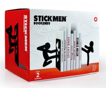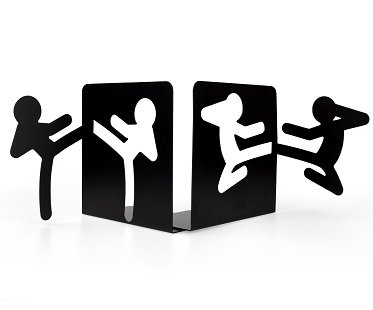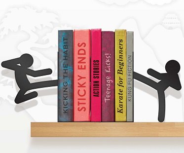 These karate stickmen bookends are fun and functional to use for holding up your favorite books or DVD's! They have been trained to the highest standard of Kung Fu, so should anyone attempt to even lay a finger on your possessions, they'll unleash the power within. HI-YAH!