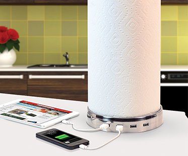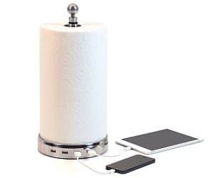 Charge your devices while your cooking away with this kitchen towel holder USB hub! It features 4 USB ports and an interchangeable topper which is actually a handy wine stopper. A must-have for every kitchen!