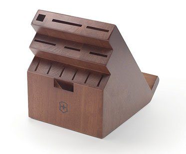 This knife block tablet stand is a great way to view cook-a-long recipes while providing a neat and safe place to store 13 knives. It is available in either dark or natural colored wood.