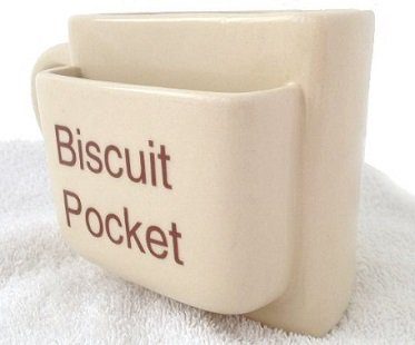 So the regular biscuit pocket mug can hold just one measly biscuit. Sometimes (or most of the time) one biscuit just won't cut it. That's when you know you need the LARGE biscuit pocket mug! A great gift idea for the cookie monsters out there.