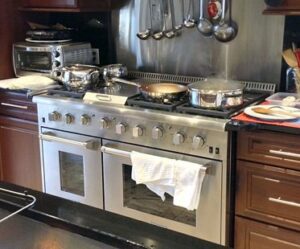 Imagine all the baking and cooking possibilities with this amazing large gas stove and double oven! Cook to your hearts content with plenty of space for all sorts of cakes, pies, casseroles and more! It features 2 ovens (1 large and 1 small) as well as 6 gas burners on the stove top (3 dual and 3 single).