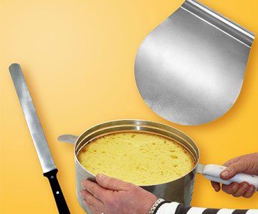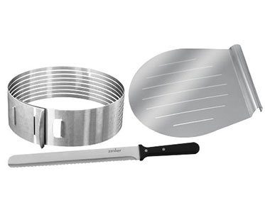 Ever wondered how the professionals do it? Well know you can too! Make fantastic looking cakes with this layer cake slicing kit. Simply place the stainless steel ring around the cake and slice through with the knife, making even layers every time!
