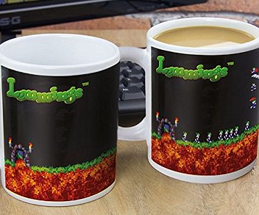 Take a trip down memory lane as you enjoy your favorite hot drink from this Lemmings heat changing mug! Watch the fuzzy little creatures appear right before your eyes when you add hot liquid.