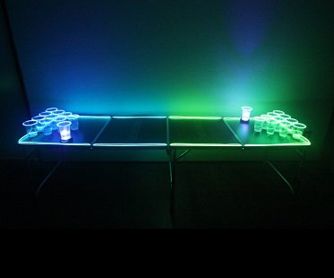 Take the best drinking game up a notch or two with this light up beer pong set! It includes a portable table that can be folded up and taken anywhere and a full set of light up cups and balls. All you have to do is decide what the winning color is for your team…green or blue??