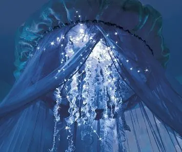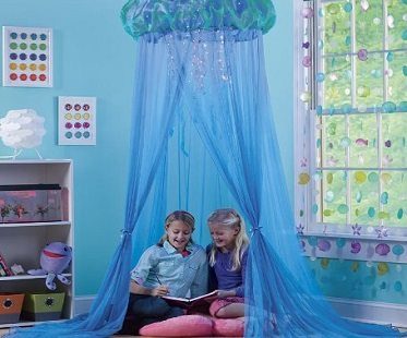 This light-up jellyfish hideaway is a great addition to your little girl's bedroom! It's a fun place to play and read and will add vibrant color to the decor of the room. It features tentacle-like streamers inside which have tiny LED lights. They look awesome when they glow at night time!