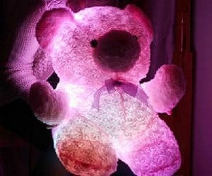 This light up teddy bear makes a great companion for your little ones who are afraid of the dark! It lights up when you cuddle it, perfect for bedtime. Made from high quality, soft plush material.