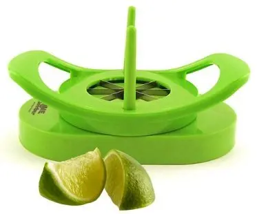 Slice limes at super sonic speed with this easy-to-use lime slicer! Just place the lime between the two pieces and push down. You'll have perfect even slices in seconds. Great for using in your drinks and can also be used for other citrus fruits.