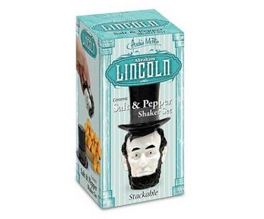 Pay homage to your favorite president with this awesome Lincoln salt and pepper shakers! This two piece set features a stackable head and a tall hat which you can add your condiments to. It will look great on your dining table at meal times!