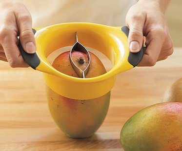 Now you can easily remove the mango pit without the added mess with this mango slicer! Featuring a stainless steel blade for long lasting use, this slicer will make light work of preparing your fruit.
