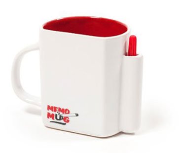 Now you can note down ideas, important messages or simply have a doodle while you drink your coffee from this awesome memo mug! Features a dry wipe surface to write on and includes a pen. A great gift idea!