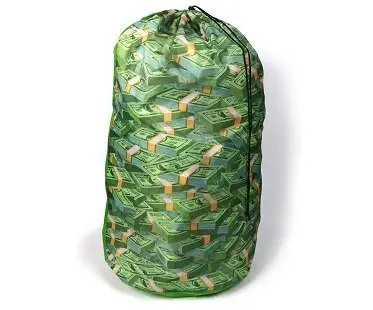Turn your dirties into loot with the money stacks laundry bag! This fun and functional bag is perfect for transporting your laundry from your college dorm to the laundromat! Features a locking drawstring so there'll be no embarrassing moments of your undies escaping.
