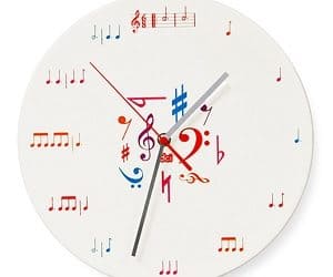 Show off your musical flair with this music notes clock! Its eye catching design features colorful notes at each number space so you can easily tell the time. A great addition to any room in the home.