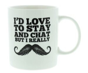 Enjoy a quick coffee break at work with this novelty mustache mug! It's perfect to use when you want to get out of boring conversations with colleagues as you can just point to the hilarious pun on the mug and walk away!