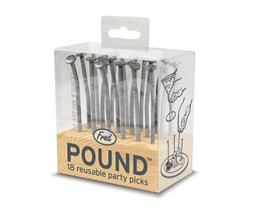 Wanna 'nail it' at your next party? Then get these awesome nail party picks! These fun and functional food sticks will have your guests complimenting your efforts while allowing for easy nibbling of your party food. Includes 24 reusable picks and comes complete with a wood grain caddy.