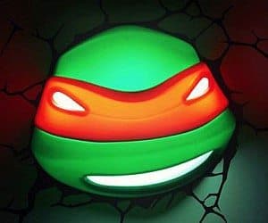 Bring some turtle power into your children’s bedrooms with this ninja turtles night light! It mounts to the wall over a cracked sticker to make it look like it has burst into the room! Provides a comforting glow.