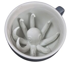 Serve your guests their coffee in this awesome octopus mug! Sit back and wait for them to find the hidden creature lurking at the bottom…! Microwave and dishwasher safe.