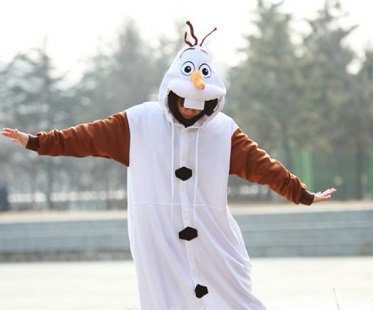 Dress up as your favorite goofy snowman while keeping warm and snug with this Olaf onesie! Made from supersoft fleece material and features Olaf's friendly face on the hood. Wear around the house or take it to sleepovers!