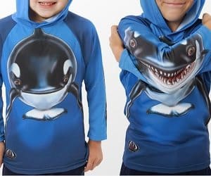 Your kids will love showing off their awesome orca whale hoodie! It features a giant mouth when they cross their arms over each other! Lightweight material that's suitable for fun in the sun and fun in the water!