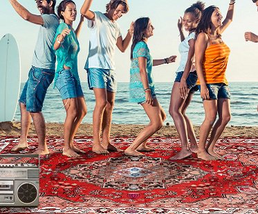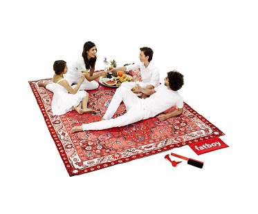 Stand out in the park or at the beach with this oriental rug picnic blanket! Its large size has plenty of space for you and your friends as well as your feast of food and drink! It comes with four oversized pins to keep it grounded and once your done, you can roll it up and use the strap to carry it around on your shoulder.