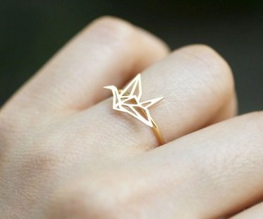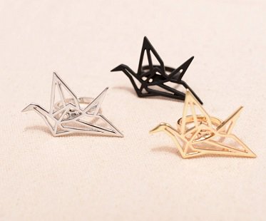 If you're looking for something with unique and creative style then look no further and get yourself this origami crane ring! Available in black, gold or silver, this ring will accessorize your outfit well and be admired by everyone.