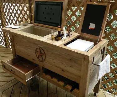 Keep your drinks ice cold during your BBQ or party in this outdoor cooler and grill prep! This stylish piece of outdoor furniture also provides you with a great place to organize your food and other bits, as well as a wine rack, a storage drawer and more!