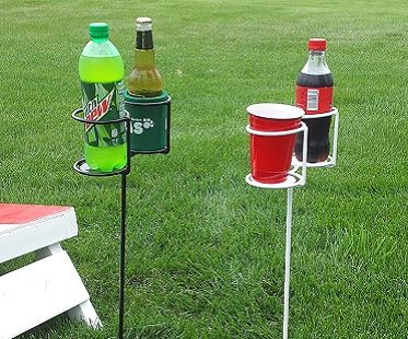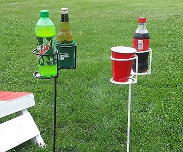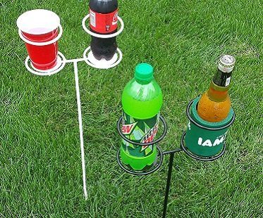 These outdoor drink stakes are the perfect place to hold your bottles, cups or glasses! They're great to use for picnics, days at the beach or simply in your backyard. Just push into the ground for an instant place to hold your drinks.