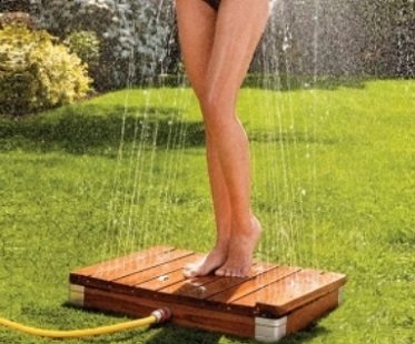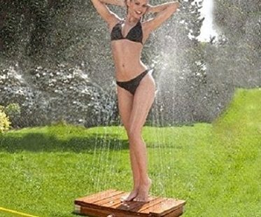 This outdoor fountain shower is perfect for cooling you off on hot days or rinsing chlorine off from the pool! All you have to do is hook it up to your hose to get it ready for use. When you want to shower, simply step onto the wooden platform and the water will shoot out from the bottom like a fountain. It features 22 fine jets that spray water up to 13 ft high.