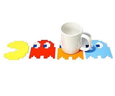 Retro gamer fans will love using these Pac-Man coasters! They'll add some color to your coffee table as well as protecting them from spills and stains. Mad from silicone and includes one Pac-Man and three ghosts.