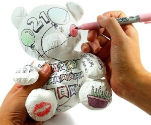 Customize your own cuddly toy and get creative on this paper teddy bear! Use pens, paints or dyes to draw or doodle on your teddy. Made from water-resistant rip-proof paper.
