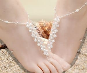 This stunning pearl pattern foot jewelry will make anyone's feet look elegant and beautiful! Perfect for beach brides or other outdoor weddings. Hand-made with a comfortable and stretchy fit.