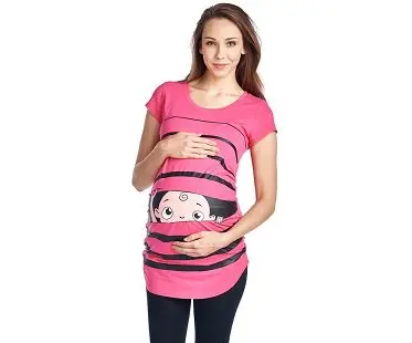 Expectant mothers will love wearing this awesome peeking baby maternity T-shirt! Available in a range of colors and sizes, this pregnancy must-have features a cute print of a little baby's head peeping through the shirt.