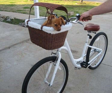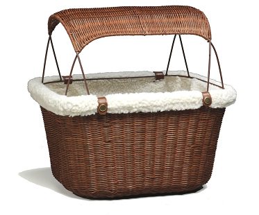 Ensure your pampered pooch travels around in comfort and style with this pet bicycle basket! It features a fancy rattan design and is lined with luxurious sheepskin- only the best for your pet! There's even a sunshade to keep them cool!
