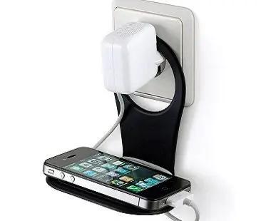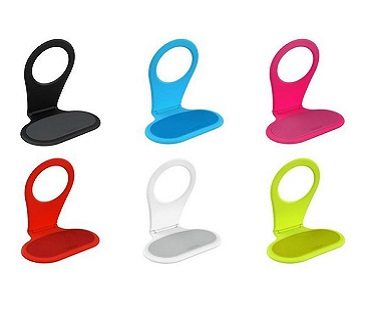 Charge your mobile phone in a neat and tidy way with this phone holder! Its simple yet effective design will hang over your charger providing a small shelf to place your phone where you can also wrap the cord around. Available in a range of different colors.