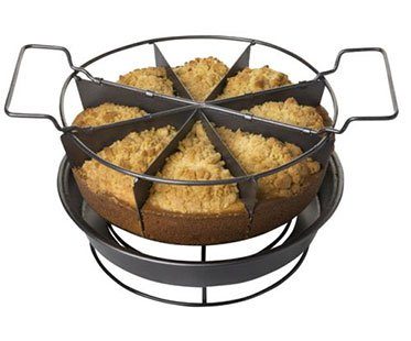 Create desserts with perfect, equal portions with this pie pan divider set! It includes a 9 inch pan and a sectioning tool that is placed over your pie or cake before cooking. Once baked and cooled, you can remove the sectioner from the top and push the pan base up to remove your pre-sliced treats.
