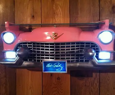Add some ultimate retro 50's style to your home with this pink Cadillac wall shelf! This awesomely crafted replica of the King's signature car is a must-have for true Elvis fans. It even features real working lights that would look perfect turned on in the evenings while you listen to your favorite songs.