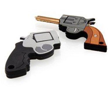 Don't mess with these key covers! They're armed, dangerous and ready to open any door! Who said keys had to be boring! Just slip your door key into the rubber holder and your good to go! Two designs per pack.