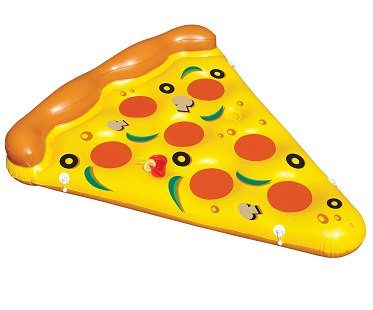 Enjoy relaxing outdoors on this tasty looking pizza slice pool float! It's the perfect shape and size to lay on while you drift along soaking up the sun. If features bungee connectors so you can connect 2 or more floats together for even more fun with the family.