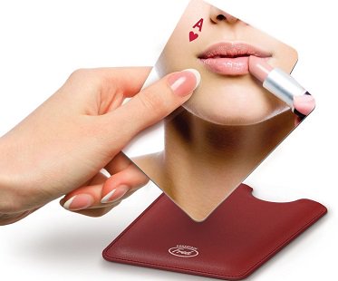 Keep an eye on your poker face with this playing card pocket mirror! It's great for applying make-up when you're out and about and it fits easily in your pocket or purse. Comes complete with a plastic case.