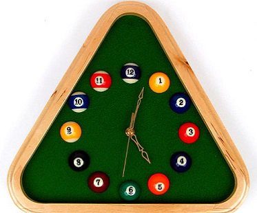 Complete the look of your man cave or family games room with this awesome pool rack clock! It features numbered pool balls to represent the hours and green table felt as the background. A great item that pool enthusiasts will love in their home!