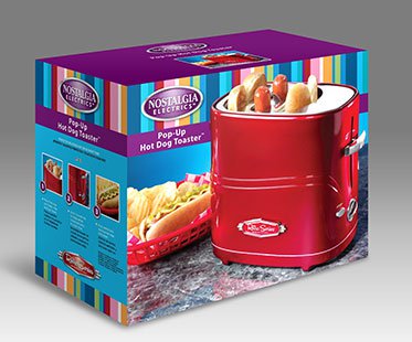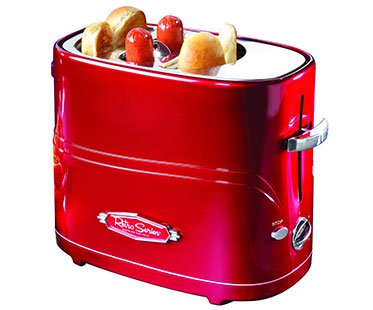 Cook up some tasty hot dogs with toasted buns in a fun and fast way with this pop-up hot dog toaster! It's retro design holds 2 dogs and 2 buns at the same time and includes mini tongs for removing food. YUM!