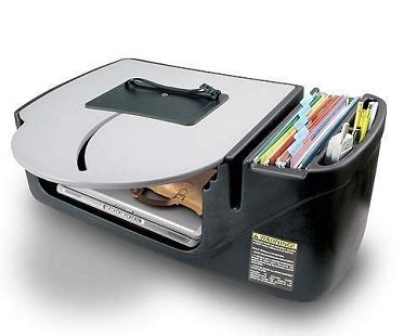 Keep organized and in control when you're out and on the go with this portable car desk! It features multiple storage compartments for folders and stationary and there's a slide out board for writing on or resting your laptop on.