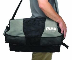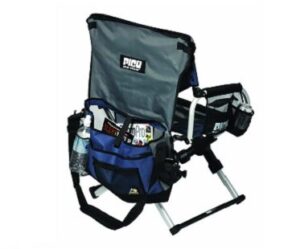 Whether it's camping, fishing or watching a sports game you'll always have a place to sit with this portable chair and bag! Its clever design allows you to fold it down to the size of a laptop case and it stores conveniently inside the messenger bag. The padded shoulder strap makes it comfortable to carry around. This chair would also be perfect for the ambitious film director! Available in gray or navy.